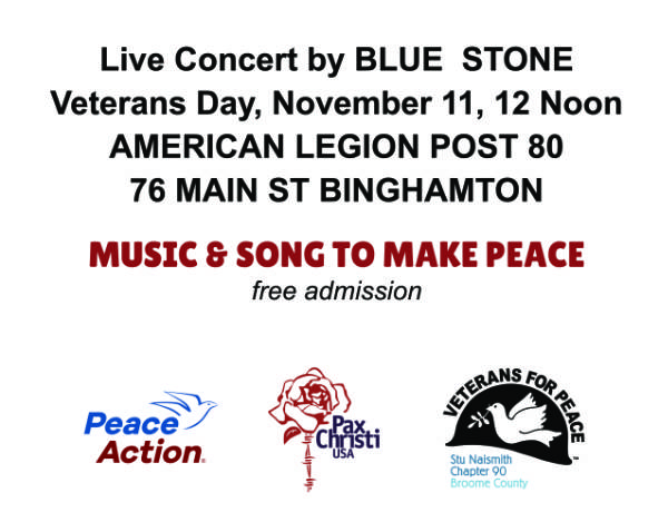 Broome County Peace Action and Broome County Veterans for Peace hold combined meetings starting at 10 AM on the second Saturday of each month. During the pandemic, meetings are held via Zoom. Contact us if you would like to join the meetings.